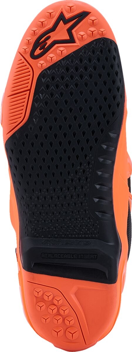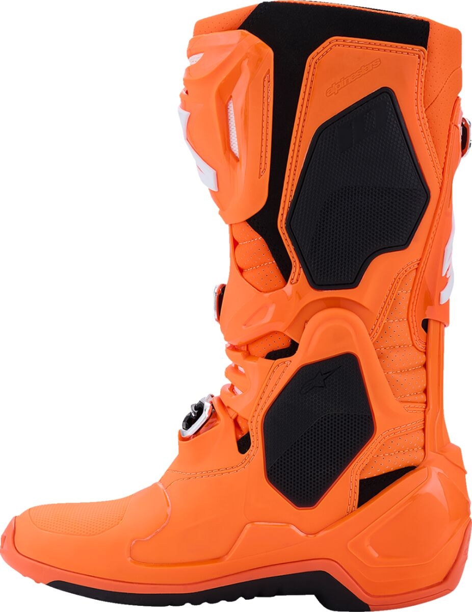 Les bottes Alpinestars Tech 10 Supervented orange intègrent une construction en microfibre perforée, offrant une ventilation inégalée. Son système de circulation d'air utilise des grandes entrées à l'avant et des sorties à l'arrière pour un flux d'air optimisé. Dotées d'une semelle intérieure 3D Higher Spring, ces bottes procurent un effet amortissant amélioré tout en évacuant la chaleur efficacement. Elles sont parfaites pour ceux qui souhaitent garder leurs pieds frais et confortables durant les longues sessions de motocross.