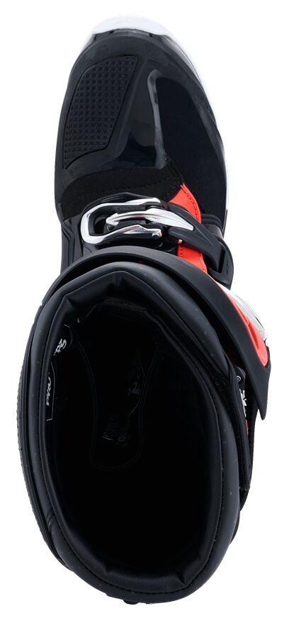 La sécurité est au cœur de la conception de ces bottes, avec des éléments comme la plaque tibia en TPU et le système de lame coulissante qui prévient l'hyperextension et améliore la flexion. La semelle spécialement conçue ajoute de l’adhérence et de la rigidité structurelle, essentielles pour le pilotage hors-piste. De plus, la protection de cheville innovante assure un lien biomécanique, garantissant que chaque mouvement et chaque pivot sont soutenus.