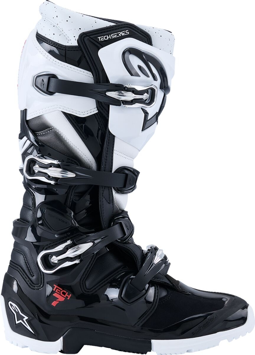 Les bottes Alpinestars Tech 7 Enduro en noir et blanc sont conçues pour offrir une protection avancée et un confort exceptionnel aux pilotes de motocross. Dotées d'une tige en microfibre résistante à l'abrasion, elles garantissent une durabilité accrue sans compromettre la souplesse. La protection tibia via une plaque en TPU et son système anti-hyperextension assure la sécurité des jambes, réduisant les risques de blessures lors des chutes.