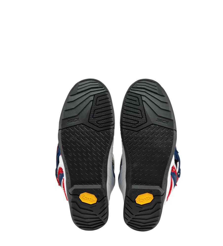 Les bottes SIDI X POWER SC BLANC/NAVY/ROUGE sont dotées de semelles Vibram® MX simple densité pour une adhérence optimale sur la moto. Le design lisse de la partie intérieure favorise un meilleur contact avec la moto, offrant ainsi une maîtrise accrue lors de vos sessions de motocross. Homologuées CE, ces bottes allient sécurité, confort et performance pour une expérience de pilotage inégalée.