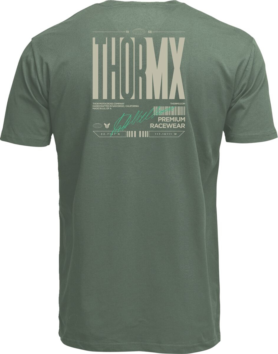 Entre deux sessions sur la piste, il faut bien s'habiller. Le t-shirt Thor Signature Series en coloris olive est fait pour ceux qui veulent afficher leur passion du motocross même loin des circuits. Un vêtement simple, sobre, mais avec du caractère.